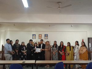 The competition witnessed enthusiastic participation from eight teams comprising students of B.A. LL.B. and BBA LL.B. programmes, with each team consisting of two mooters and one researcher. The event aimed to enhance students’ legal research, drafting, analytical reasoning, and oral advocacy skills, while also familiarizing them with courtroom procedures and professional etiquette.