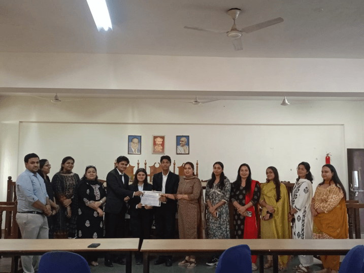 The preliminary rounds were conducted simultaneously in various rooms of CLE and were judged by the faculty members of the department. The final round was held in the Moot Court Room, where the top two teams competed before a distinguished judging panel comprising Dr. Chandrika Setu Sharma (Head of Department, CLE) along with Ms. Muskan Grover and Ms. Anjanee Goel, Faculty Conveners of the Moot Court Society.