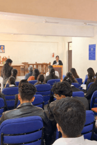 The discussion focused on how rapid technological advancements have transformed the nature of crime, particularly in areas such as cybercrime, online fraud, identity theft, and misuse of social media platforms. Students actively shared their perspectives on the challenges faced by law enforcement agencies and the need for stronger cyber laws and digital awareness.