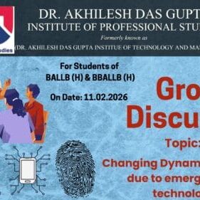 Dr. Akhilesh Das Gupta Institute of Professional Studies organized a Group Discussion on 11 February 2026 for the students of BALLB (H) and BBALLB (H) on the topic “Changing Dynamics of Crime due to Emergence of Technology.” The discussion focused on how rapid technological advancements have transformed the nature of crime, particularly in areas such…