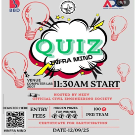 INFRAQUIZ Date of event: 12-09-2025Department: Civil EngineeringVenue: Smart Room Objective: To enhance the Technical & Non Technical skills of the students. Conducting quizzes for students offers numerous benefits, including enhanced knowledge retention, improved critical thinking, and boosted confidence. Quizzes encourage active learning, promote healthy competition, and help students identify areas for improvement. They also develop…