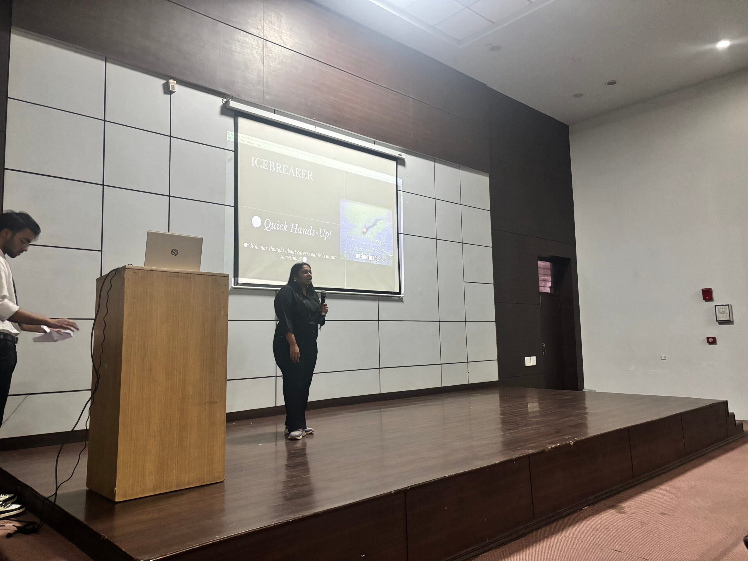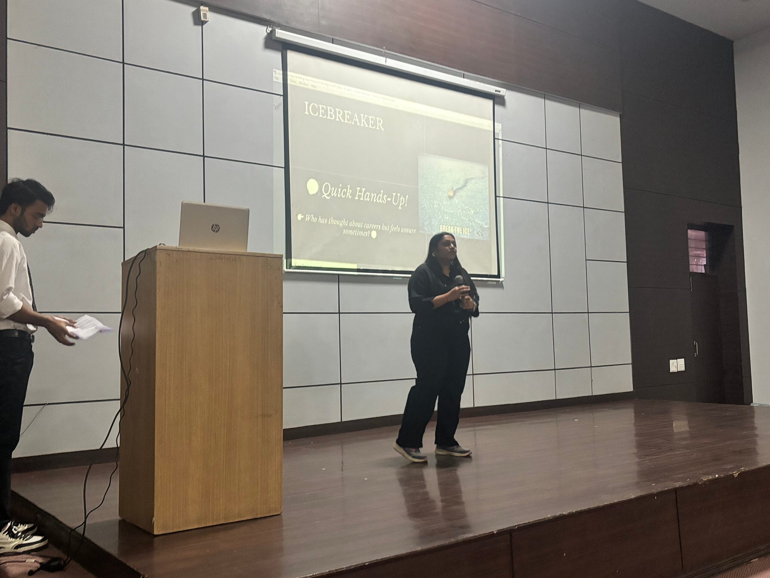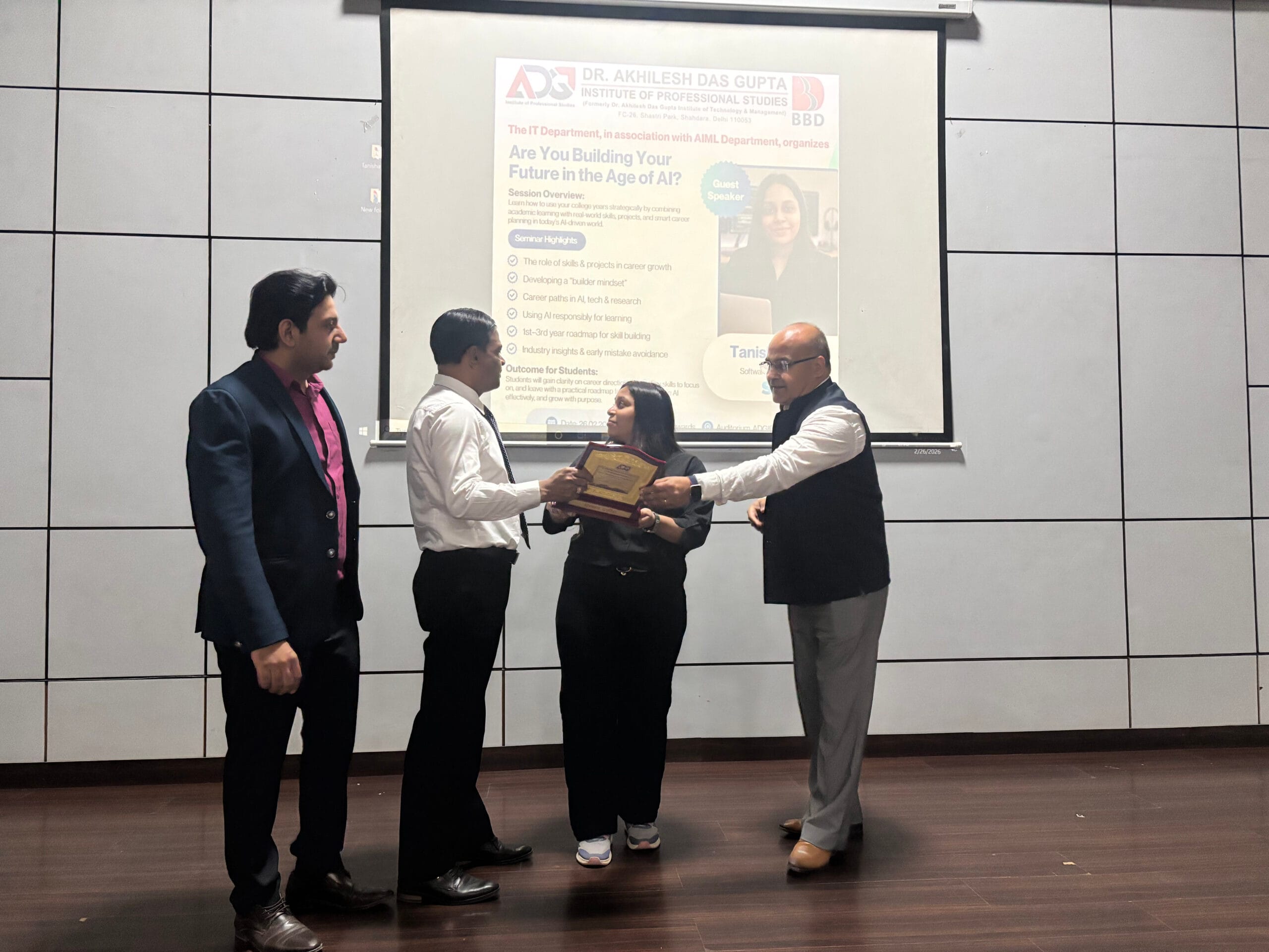 The topic of the session, “Future in the Age of AI,” focused on the rapidly evolving technological landscape and the growing impact of Artificial Intelligence across various industries. Ms. Bansal highlighted emerging career opportunities, essential skills required to thrive in the AI-driven world, and practical insights into how students can prepare themselves for future challenges.