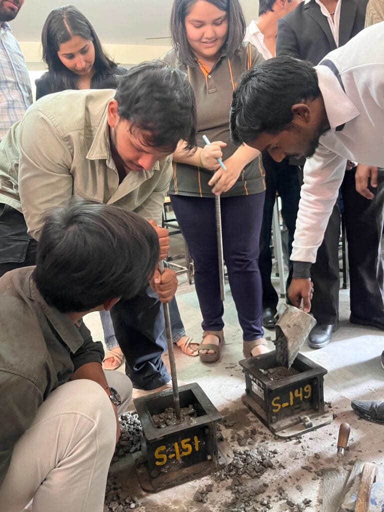 Mr. Varun showed practical trial of M25 concrete mix design for students. Along with the trial, They organized an interactive technical session focusing on mix design concepts, practical considerations, and best practices followed in the industry.
