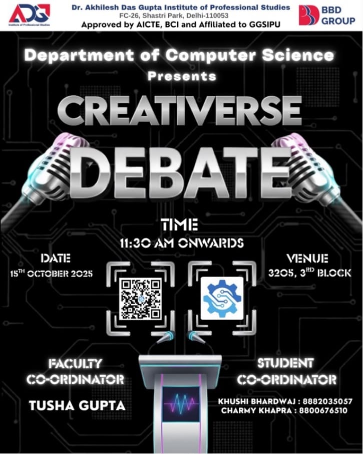 The Creativerse Debate challenged students to articulate logical opinions on contemporary issues related to technology and innovation. The event emphasized public speaking, analytical reasoning, and persuasion, nurturing confidence and communication skills among participants.