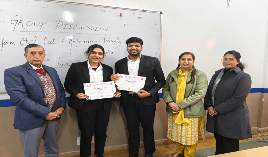 A Group Discussion on the topic “Uniform Civil Code: Reforming Family Law in India” was conducted for the 2nd year BA.LLB (H.) and BBA.LLB (H.) students. The session aimed to encourage critical thinking, enhance communication skills, and deepen students’ understanding of the constitutional, social, and legal aspects of the Uniform Civil Code (UCC).
