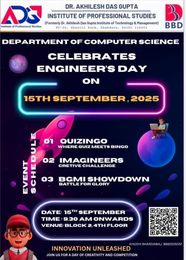 The Department of Computer Science at Dr. Akhilesh Das Gupta Institute of Professional Studies celebrated Engineer’s Day 2025 with immense enthusiasm and creativity on 15th September 2025, commemorating the birth anniversary of Sir Mokshagundam Visvesvaraya, one of India’s greatest engineers and visionaries.