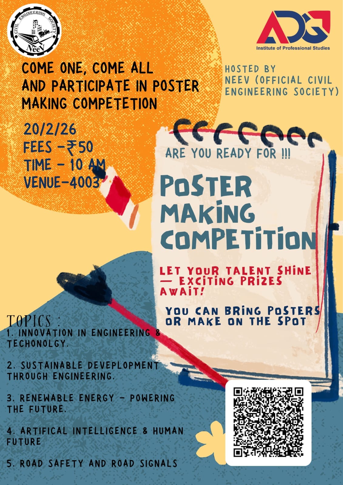 A poster making competition aims to encourage creativity, visual expression,and communication skills among participants. It allows individuals to convey themes, ideas, or messages through a blend of graphics, colors, and text,